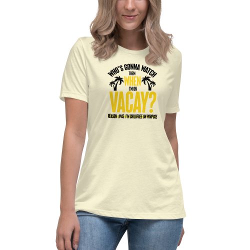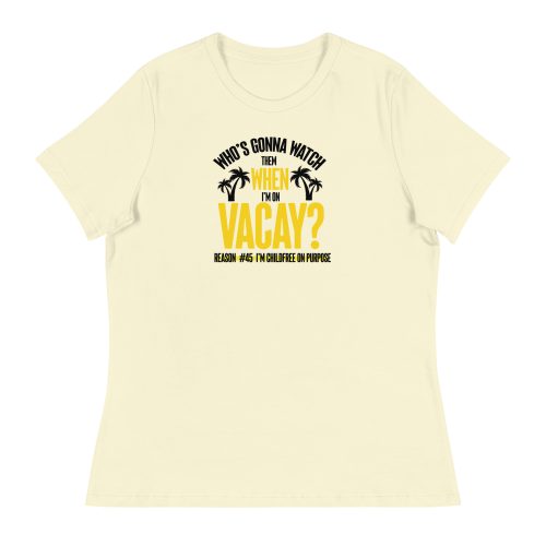 Who’s Gonna Watch Them When I’m On Vacay? ChildFree (Black Letters) Women’s Relaxed T-Shirt