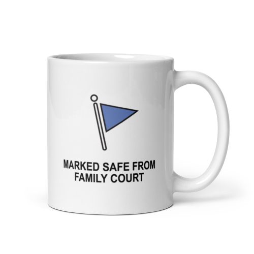 • Marked Safe From Family Court ChildFree White glossy mug